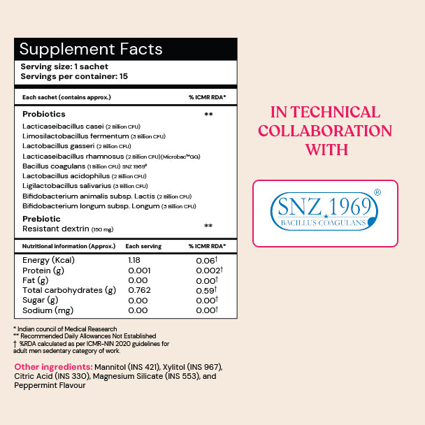 Happy Gut has 9 bacterial strains that are most seen in Indian Gut as per Indian foods consumed. This variety of flora is unique to Happy Gut, which is very effective and suited for being used as a daily supplement. Other probiotics have only few bacterial strains ( 2 to 4). Taking only few bacterial strains as a supplement for many days can prove harmful to the gut, by causing overpopulation of these bacteria and suppression of others.